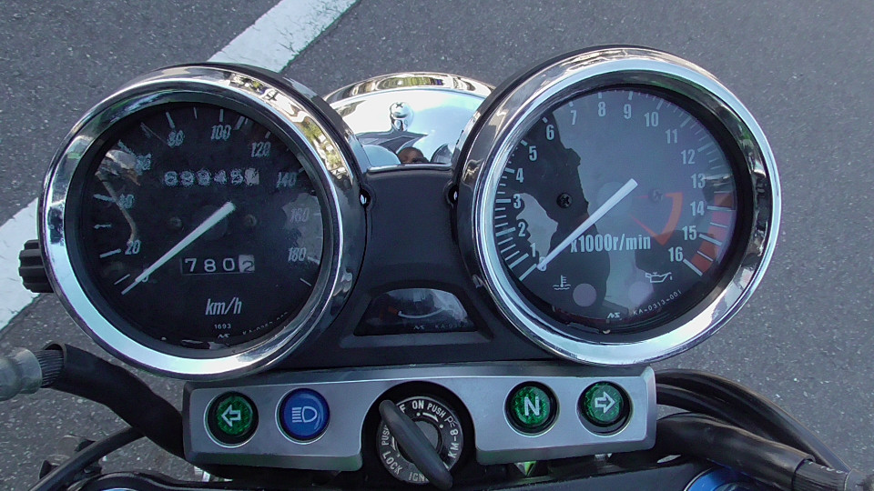 そのあとは0Kmに戻ってしまいます。つまり4ケタオドメーターのバイクは何回か0に戻っている可能性が否定できません。よって当社では走行距離の欄に?をつけています。