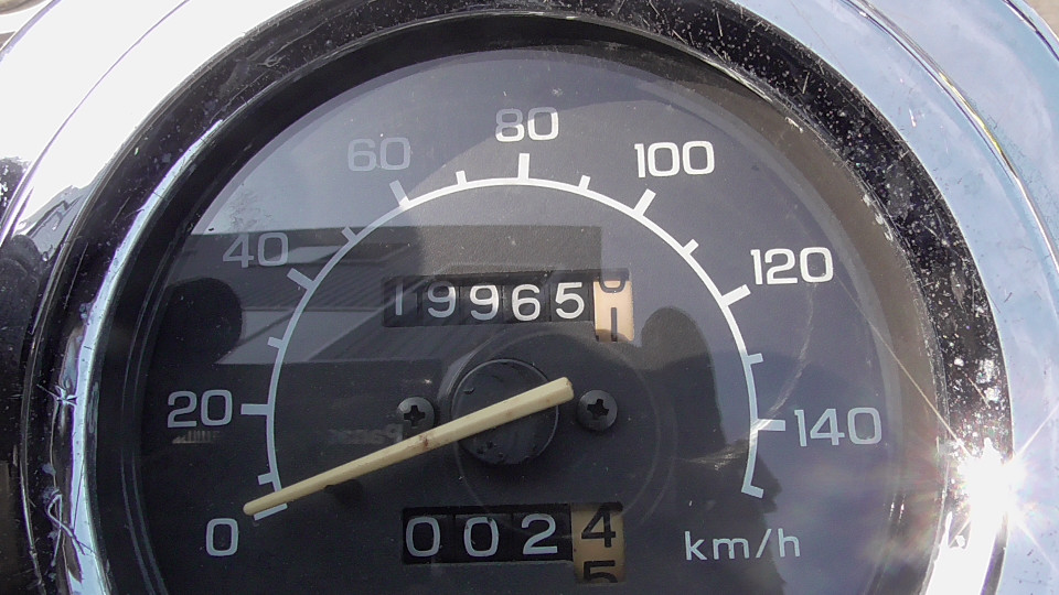 バイクの走行距離に関して:古いスクーターの多くのオドメーターには4ケタが採用されています、この4ケタメーターの場合最高の表示距離は、9999Kmで