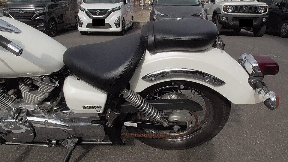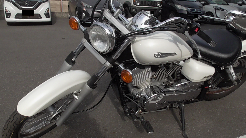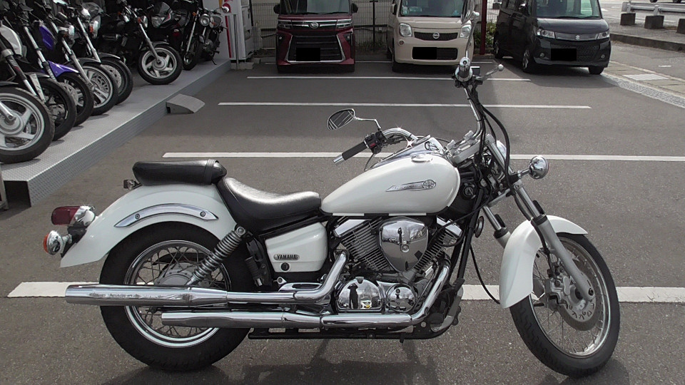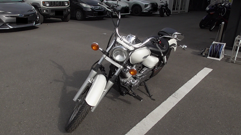 商品ID:1768885028:ホワイトカラーは親しみやすく可愛いアメリカンとして若い女性にも人気!低めのシート高で足付きもよく車体も軽いため、初心者の方の初めてのアメリカンバイクとして最適です。