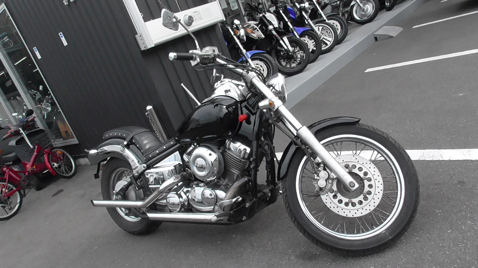 商品ID:1771565482:国内のアメリカンバイクの中でも人気の高いドラッグスター。重厚感があり、存在感抜群です!どこか柔らかさを感じさせるデザインと低シート高による足つきの良さで女性ライダーの人気も高いです。スラッシュカットマフラー、シート、ウインカー。R6年5月車検時走行距離32,200km。