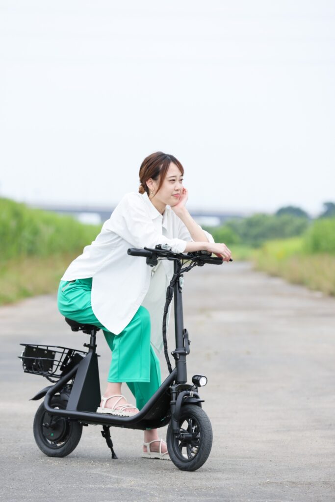 スクーター感覚で座って乗れる特定小型原付です、原付に乗ったことがある方ならすぐに慣れていただけると思います。